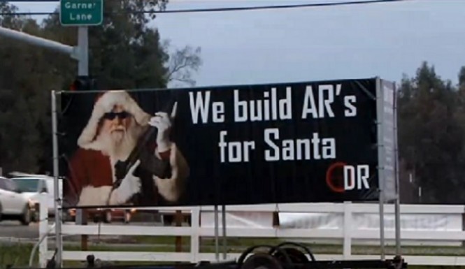 According to CBS Sacramento, the billboard for Down Range Indoor Training Center in Chico, California shows Santa with a gun and a tagline that reads: “We build AR’s for Santa.” Co-owner Steve Dyke said the local gun range had to come up with something creative to attract customers.