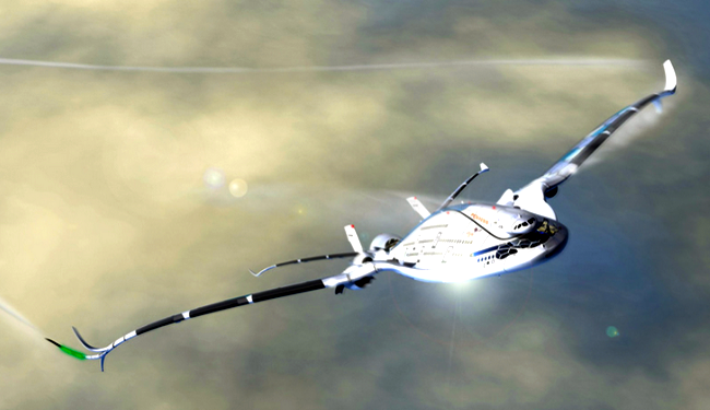 According to CNN, the plane is powered by six hydrogen engines including a rear engine that doubles as a wind turbine. Solar panels on the roof and wings would also provide the ultralight plane with juice as it flies.