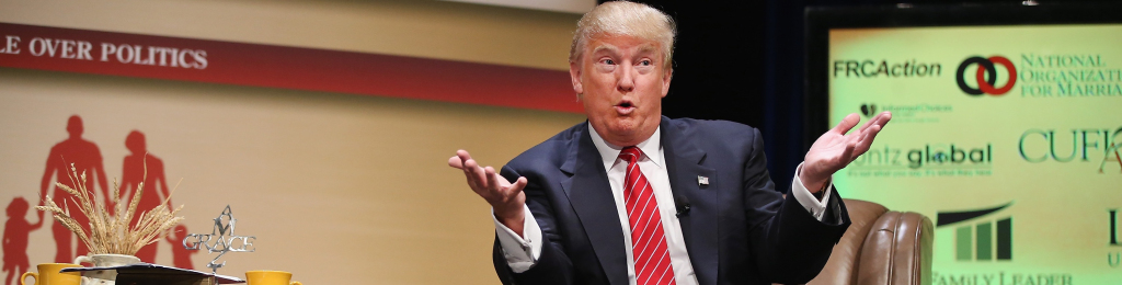 AMES, IA – JULY 18: Republican presidential hopeful businessman Donald Trump fields questions at The Family Leadership Summit at Stephens Auditorium on July 18, 2015 in Ames, Iowa. According to the organizers the purpose of The Family Leadership Summit is to inspire, motivate, and educate conservatives. (Photo by Scott Olson/Getty Images)