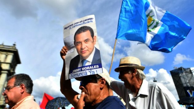 Credit: Johan Ordonez / AFP | Guatemalans march demanding the resignation of President Jimmy Morales in front of the Culture Palace in Guatemala City, on August 26, 2017.